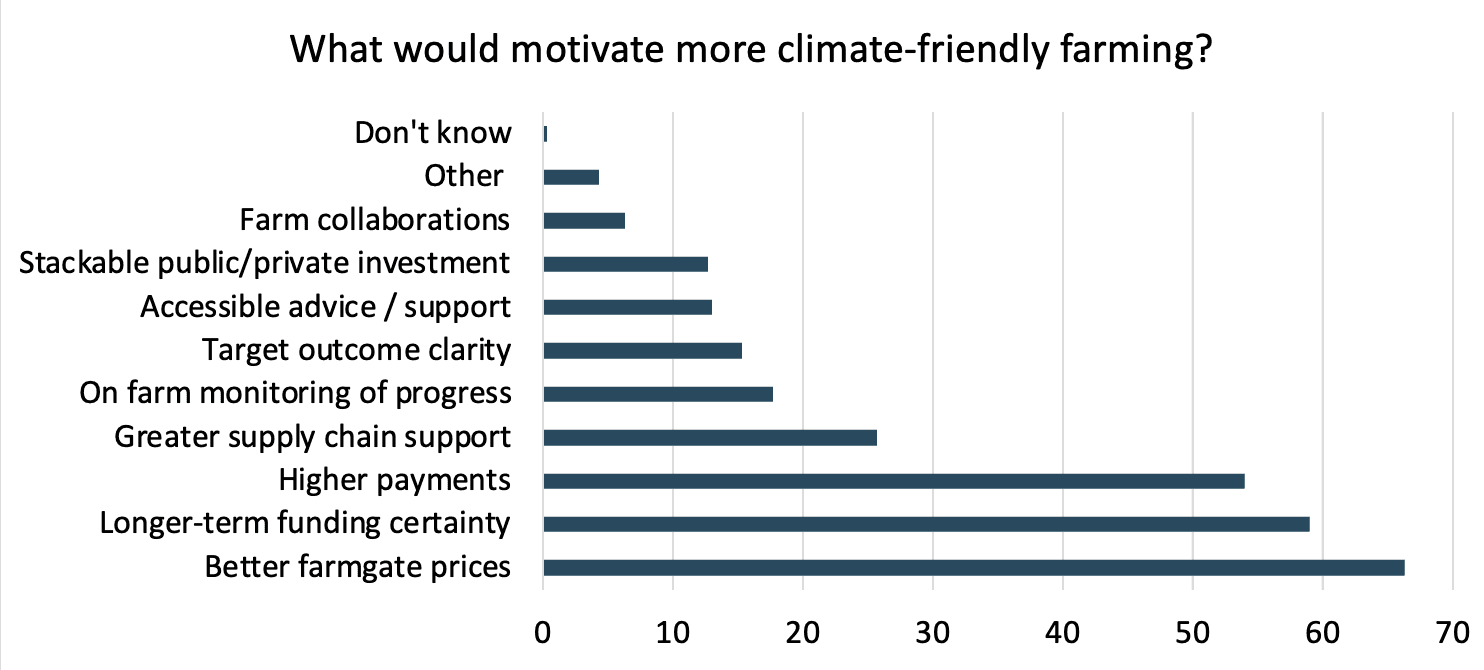 Figure above: In response to the survey question: “What would encourage you to do more for climate and nature outcomes on your farm? Select up to three.”